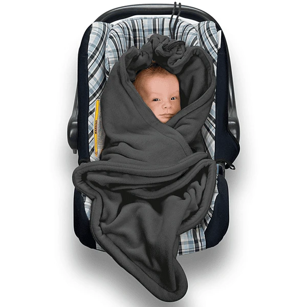 Per brevi distanze si può semplicemente e comodamente avvolgere il bebè nella coperta, senza uso di giacche. Le pratiche fessure per cinture consentono di fissare il bambino in modo sicuro e confortevole nella coperta in pile nel seggiolino auto.